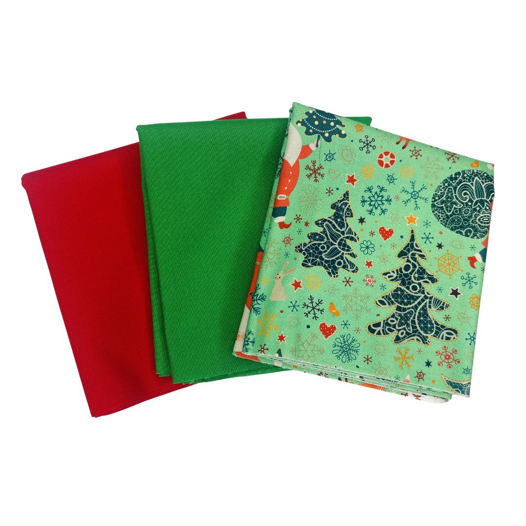 Tela 100% algodón americano, 3 diseños Navideños,  cada uno mide 1,10mt  ancho x 30 cm, cada tela, ideal para cojines, individuales, bolsos, para realizar tus lindos regalos.