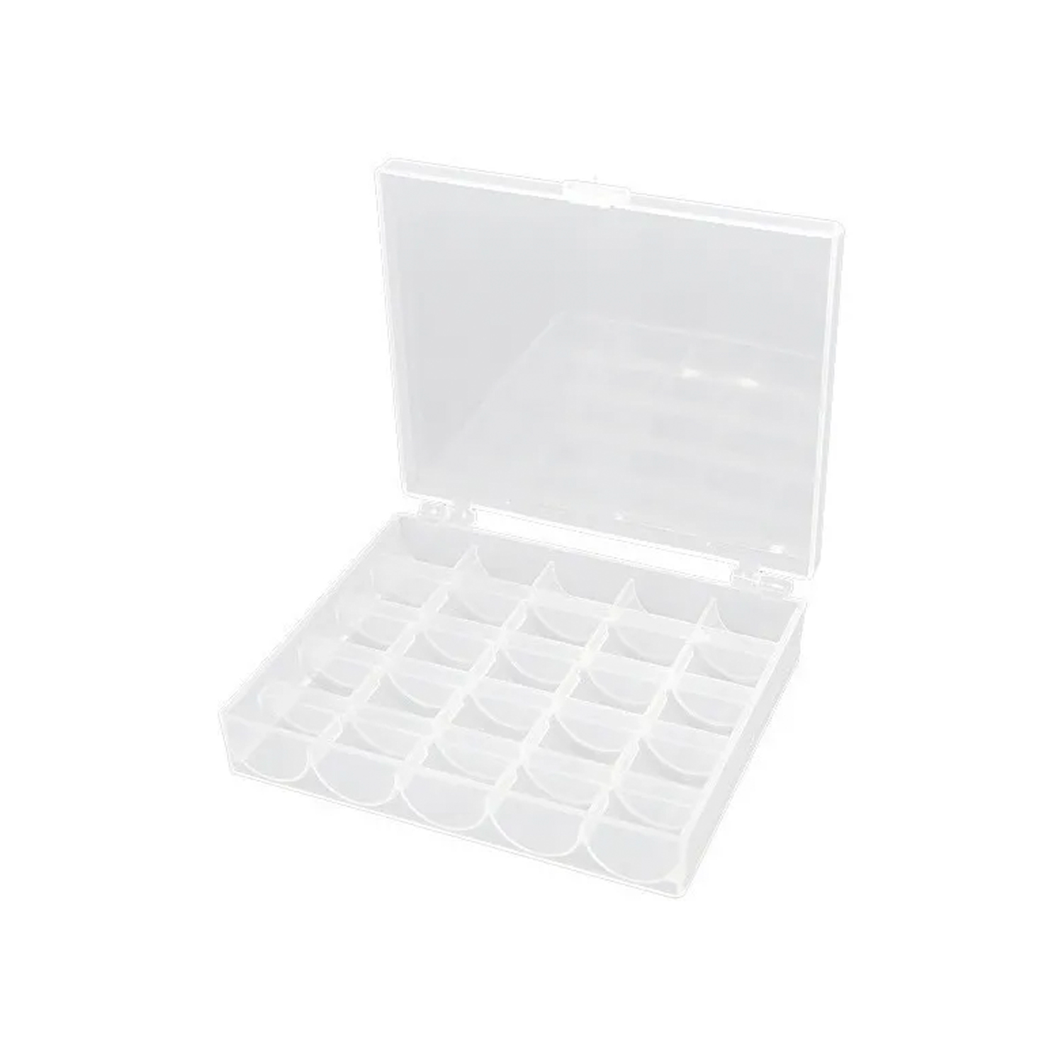 Caja de plástico, permite guardar y sacar sus bobinas fácilmente, así siempre las tendrá a mano y ordenadas, tiene una capacidad de 25, NO las incluye