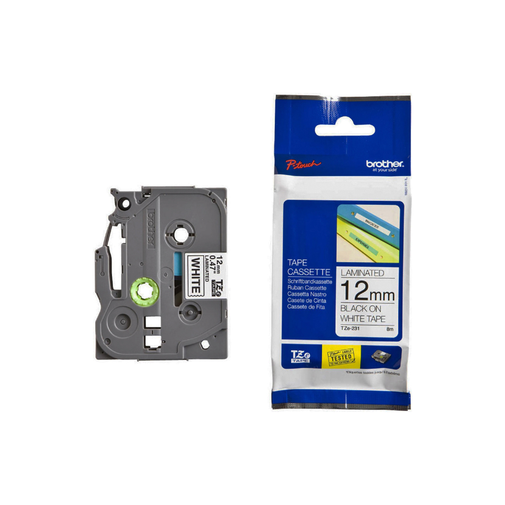 TZe-231 Negro sobre Blanco 12mm x 8mts. Adhesivo Standard. Cinta para Impresora Rotuladora Brother para P-Touch PTH110, PTE300VP