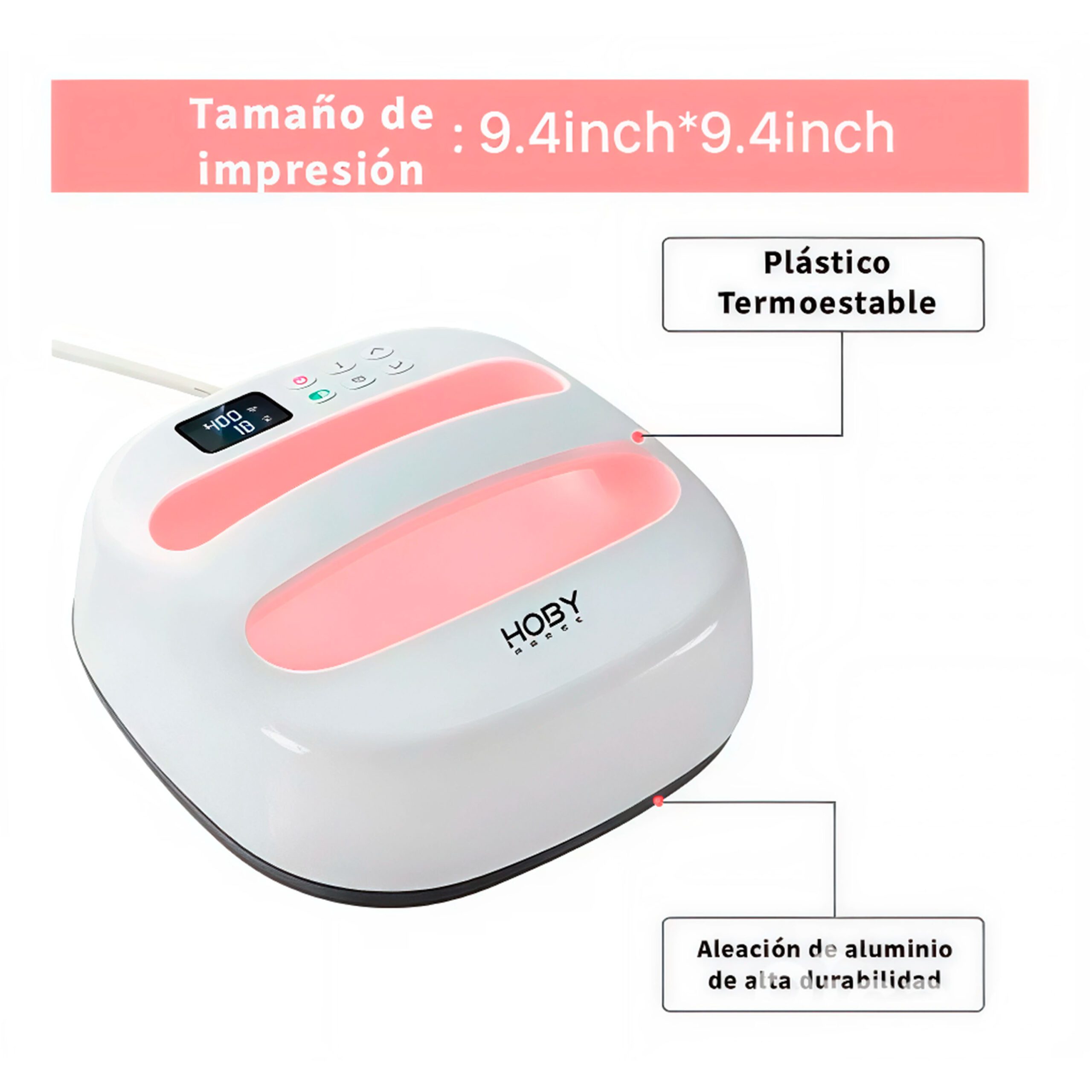 Estampadora portatil Hoby Press de 24 x 24 cms, estampadora de fácil uso, control digital de temperatura y tiempo.