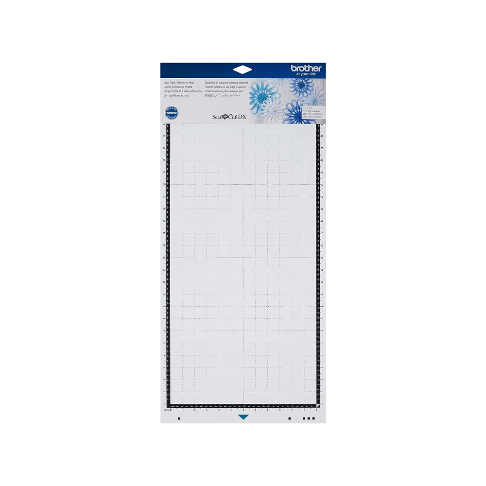El tapete (CADXMATLOW24) mide 12″ x 24″ (30x60cm) de baja sujeción para máquina ScanNcut SDX de Brother viene con una cuadrícula impresa en centímetros y pulgadas, como guía para realizar los cortes y dibujos en la pantalla. Diseñada para una gran variedad de materiales, es ideal para soportes delgados y papeles finos.